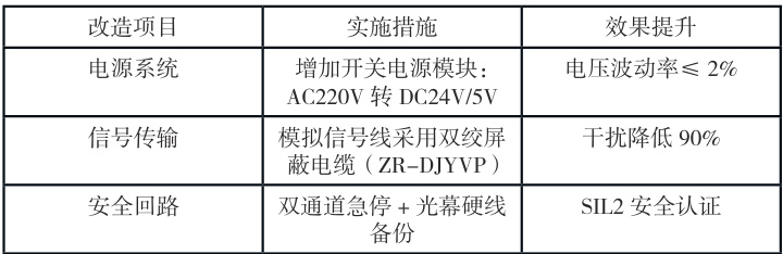 模拟量处理:集成模拟输入模块采集位移传感器信号。为抑制干扰,采取双绞屏蔽电缆布线、 0.33μF 滤波电容及 DC10V 稳压电源三重抗干扰措施。应用该方案后模拟量采样波动从 ±5% 降至 ±0.2%