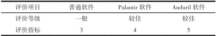 市场机制下军品科研生产管理机制还要主动设置激励机制,并优化完善多种资源配置。应用军品科研生产管理机制时,要做到国家战略需求、市场机制兼顾,借助动态调整方式合理分配科研经费,根据军品科研项目实际生产情况来倾斜资源。优化配置创新资源时,需将关注重点放置到科研项目关键技术中。在实际操作中,相关部门可搭建专项基金,将相关基金运用到军品科研项目中,严格规划科研项目中的具体技术,提升军品科研生产效率 [2]。为满足军品科研高质量生产管理需求,要依照资源配置运用状态,建设全新绩效评价系统。设计绩效评价指标时,可将绩效评价重点放置到军品科研生产过程与管理状态,并严格检查生产军品科研产品时,相关政策的支持效果,确保军品科研生产管理机制完整性。表 2 展现了某企业评价军品科研生产过程时的动态变化指标,将变化评价划分为“较差”“一般”“较佳”,以 5 分为基准,3 分以下为较差、3 分为一般、3 分以上为较佳。以普通软件、Palantir 软件、Anduril 软件为例,利用评价等级与评价分数展现相关科研军品生产管理效果 [2]。