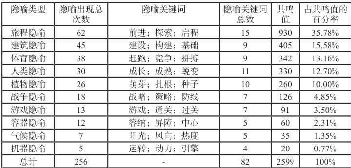 token(隐喻出现总次数)”方法,计算各类概念隐喻的出现频次。