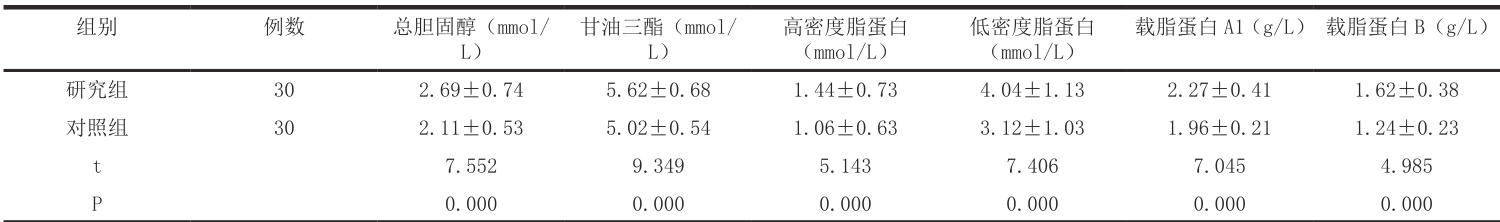 表1 两组患者脂生化水平检测结果进行对比分析(