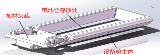 如图 1-1 中,在设备舱与电池舱设计中,着重设计了设备舱的密封防水功能,其内部安装所有电子设备,包括机器人主控板和电池等。电池舱采用抽屉式拔插设计,方便更换和维护。使用高能量密度、高转换效率的锂电池,确保机器人具备持久的续航能力,同时更加清洁高效。