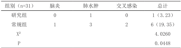 研究2.3 显示,并发症发生率在研究组低于常规组,P< 5。原因如下,优质护理会关注手足口病相关的症状,经体温护理能为患儿快速降温,防止体温过高 肌炎等问题 。生活中监督患儿用药、出入量等情况,合理饮水,能降低肺水肿风险。由于手足 而患儿免疫能力差,就诊时需重视自我消毒隔离处理,患儿个人物品需单独消毒存放,能避免个人用品混淆造成的感染,降低手足口病加重风险[9]。