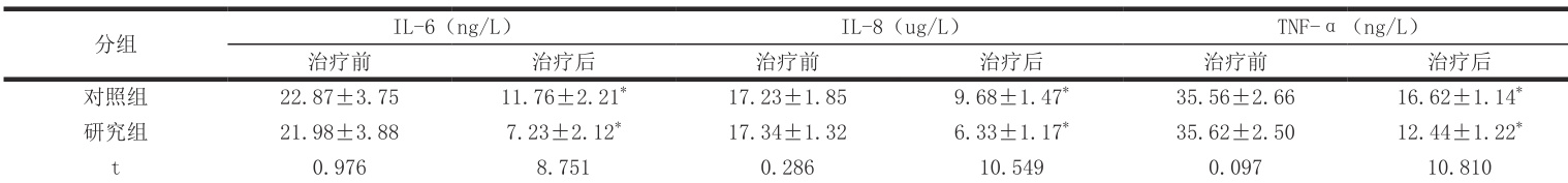 研究组3 项炎症指标的数据更低( P<0.05 ),详见表1 :