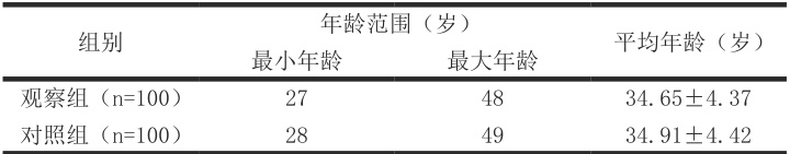 将我院于 2024 年 8 月至 2025 年 2 月收治的 200 例行经阴道超声引导下取卵术的患者,随机分为观察组、对照组,各 100 例。两组患者临床资料如表1 所示: