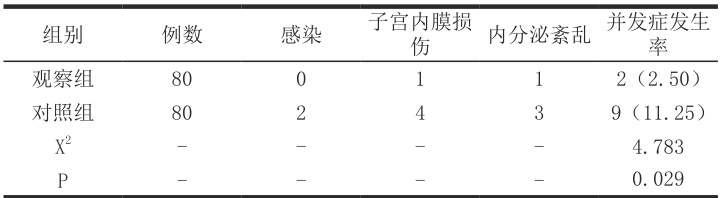 观察组并发症发生率明显低于对照组,差异存在统计学意义( P<0.05 ),见表 2