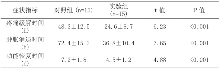 2.2 对照组和实验组患者症状缓解时间,可见表2 :