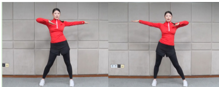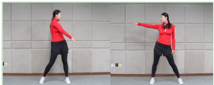 7 拍和8 拍,手臂侧平举,与胸平行,交替两次。
