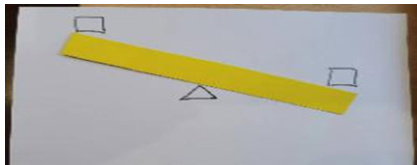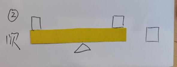 本节课第二个困惑在于天平的使用,理解平衡与不平衡的内 在含义,考虑学具对孩子思维的局限性,笔者没有给每个孩发个天 平去感受感受,学生本身在科学课上对天平已经有所认识,基于这样的学情,在接下来的新课初步探究过程中,笔者都采用长方形横条来模拟天平的托盘,手动调节平衡状态,灵活呈现课堂上学生出现的各种表述状况,也让这一学段的孩子渗透模型化思想,由浅入深,层层递进。