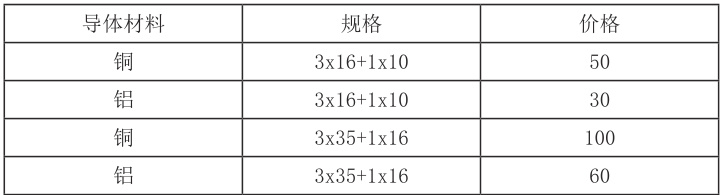 表1 不同导体材料和规格电缆价格对比(单位:元/ 米)