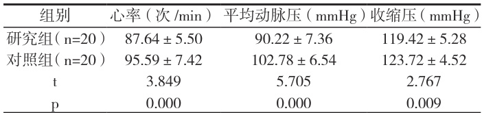 研究组麻醉苏醒后各项血流动力指标较对照组更平稳,P<0.05 ,见表。