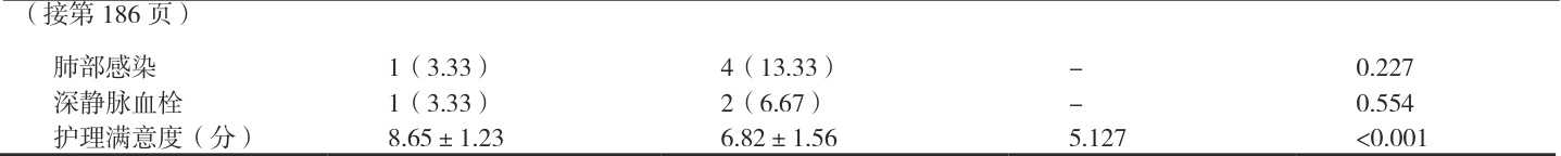 表3 两组患者并发症及护理满意度比较[n(%),x±s]