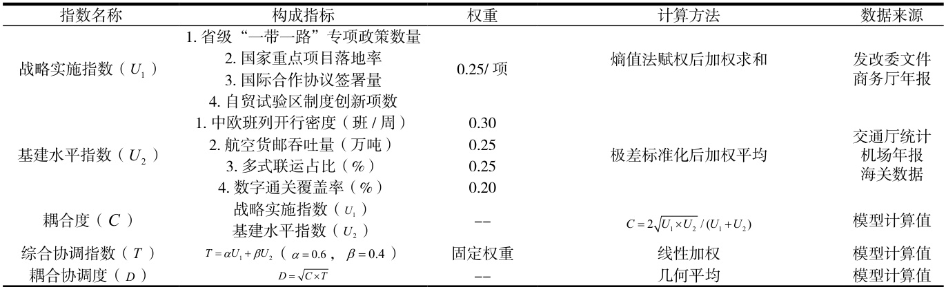 耦合协调度模型:测算“一带一路”战略实施(政策强度指数)与基础设施建设(投资密度指数)的协同水平[7],公式为: