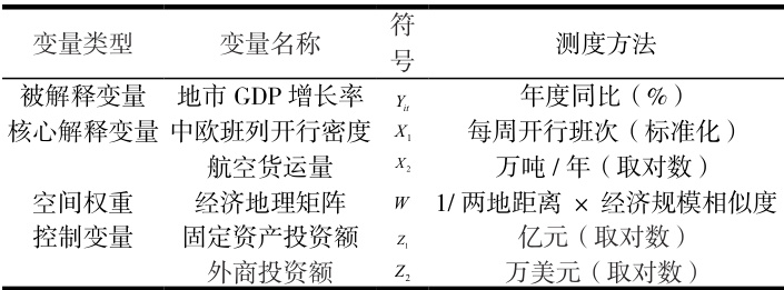 ( Yit 为地市GDP, Xn 包含中欧班列开行密度、航空货运量等变量)