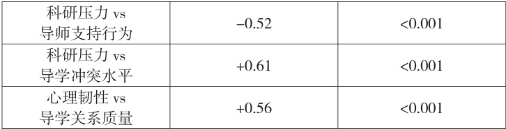 科研压力与导学信任呈显著负相关( r=-0.52 , p<0.001 )。当成果未达预期时, 37.4% 的学生担忧导师负面评价。