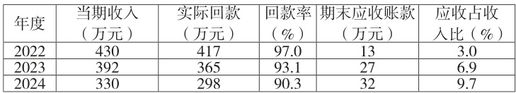表 2-3 回款率与应收账款(2022–2024 年)
