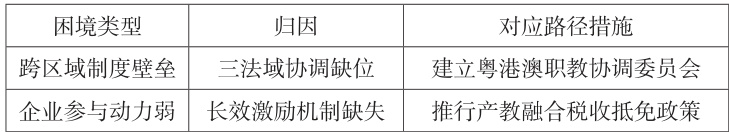 粤港澳地区职业教育标准不一,学历互认困难,是由于受各自不同的法律体系和管理教育体系的影响;香港与内地职业资格认证存在较大差异,人才跨区流动成本进一步提高。而且企业跨区参与产教融合项目的积极性也会受到一定程度的影响,因为三地之间的税制差异、使用体制和财政补贴方式的不同。