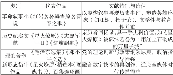 红色经典图书在七十余年的出版历程中形成了层次分明的内容体系,依据文献性质与主题可划分为四大类型: