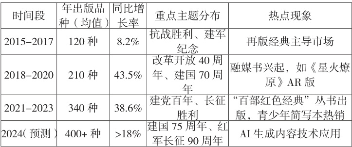 表3:基于大数据的红色经典图书出版趋势分析(2015-2024 年)