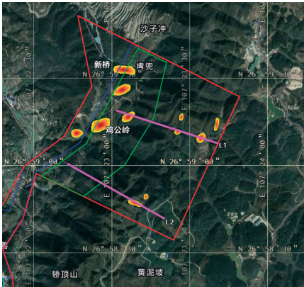 In the Fuquan Phosphate Mining Area of Guizhou Province, this technology was employed to delineate prospecting target zones. Combined with ground-based seismic frequency resonance detection, it successfully identified the occurrence characteristics of deep phosphate ore bodies. The results showed strong consistency with existing drilling data, demonstrating that the satellite-based targeted ultra-weak NMR detection technology achieved favorable geological outcomes in the exploration of phosphate deposits in Fuquan, Guizhou.