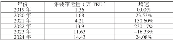 2024 年,中部某省份至沿海港口铁海联运班列集装箱运量共计完成 14.43 万 TEU,同比增长率 24.08% 。通过回归分析,综合预测2035 年将达到 46.1 万 TEU。