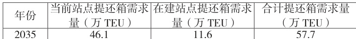 综上所述,将铁海联运、陆水联运提还箱需求量相加,得到中部某省份2035 年东向提还箱需求量预计将达到72.1 万TEU。