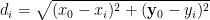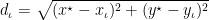 如果选取 (x0,y0) 为提还箱点的选址位置,则各需求节点至提还箱点的距离 di 可以表示为:
