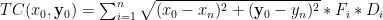 求总运输费用最小的提还箱点位置,就变成了对函数 TC(x0,y0) 求极值的问题,即求 (x0,y0) 使:
