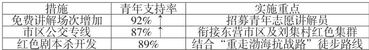 开发 " 重走渤海抗战路 " 沉浸式剧本杀,整合原《渤海日报》文献与亲历者口述史,上线数字故事库;设立" 青年传播官" 激励计划,通过短视频创作大赛提升在地叙事能力,破解招募信息不透明困局。