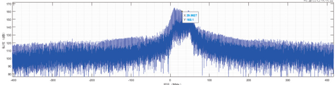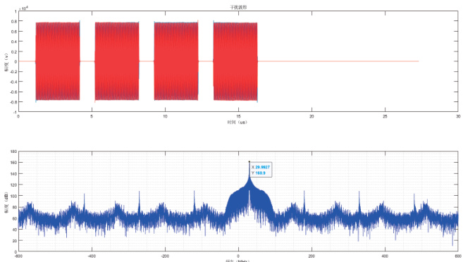 其仿真图像如图 4 所示,可以看到干扰信号的中心频率与雷达信号非常接近,且在目标频带内的功率大,且由于两者之间的相位差异,从而导致被干扰信号的性能下降。