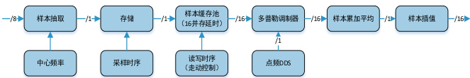 2) 样本缓存:16 路平行缓存区构成缓存池,每路样本之间间隔目标间距,见图7;