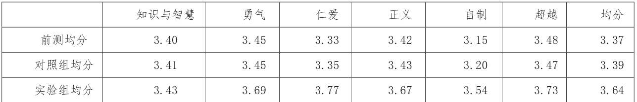 表2 对照组、实验组前后测积极心理品质差异
