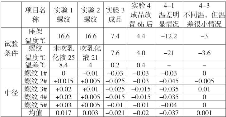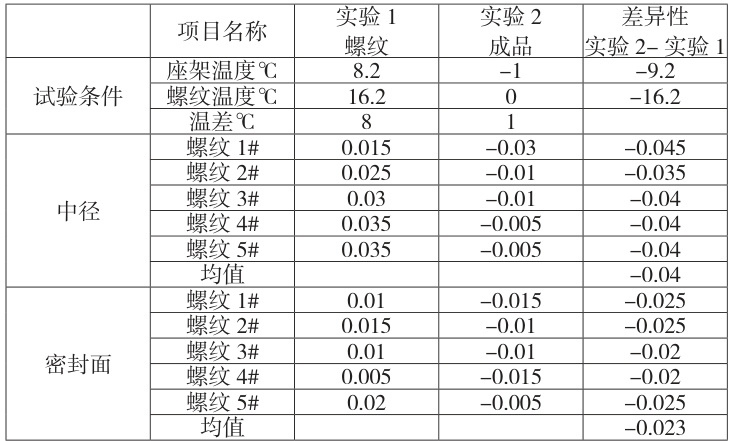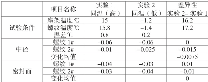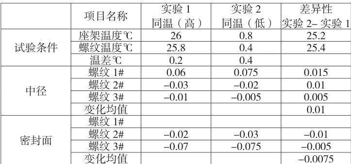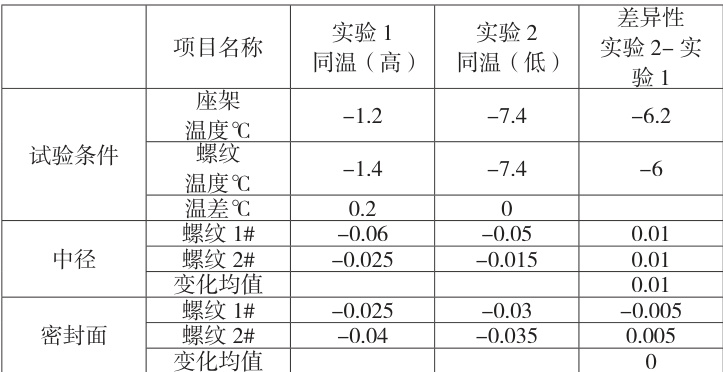 (一)消除量器具误差:实验所用的量具全部是同一中径规、同一密封面表、同一坐架,每测试一个环境,量器具同温2 小时。