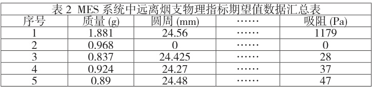采用人工筛查 MES 系统中远离烟支物理指标期望值数据如下表2: