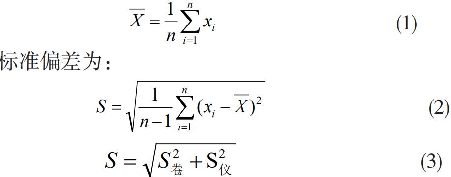 由于 MES 系统中烟支物理指标检测数据为正态分布,常用的三用种异常数据识别方法,从理论上来说,格拉布斯准则异常数据检出率灵敏度更度,但和狄克逊准则一样,不便于现场人员的人工核对。本文中以拉依达准则为基础算法,结合烟支卷制、包装生产过程检验20 支近似同一时段生产的烟支烟品为分析对象,卷烟物理指标标偏 s卷以及物理指标检测仪器重复性标偏为 s 仪,根据上述两项标准偏差计算相应的S 合,而 Πn 次测量数据的算术平均值为: