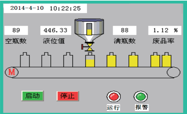 此外,系统设计包括手动操作模式,以便在设备校准或发生故障时能够进行人工干预。在手动模式下,操作员可以通过按钮来控制输送带的启停以及灌装装置的运作。同时,系统还配备了故障报警机制,一旦遇到输送带、灌装装置或传感器等部件的故障,系统会立即发出声光报警,并在人机交互界面上展示故障详情,这有助于操作员迅速识别并处理问题。