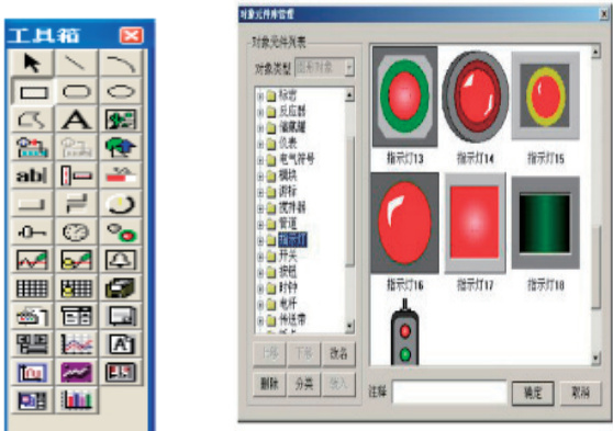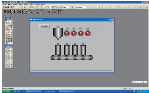 选中“洗衣液装瓶机”窗口图标,单击“动态组态”静动画组态窗口,开始编辑画面。