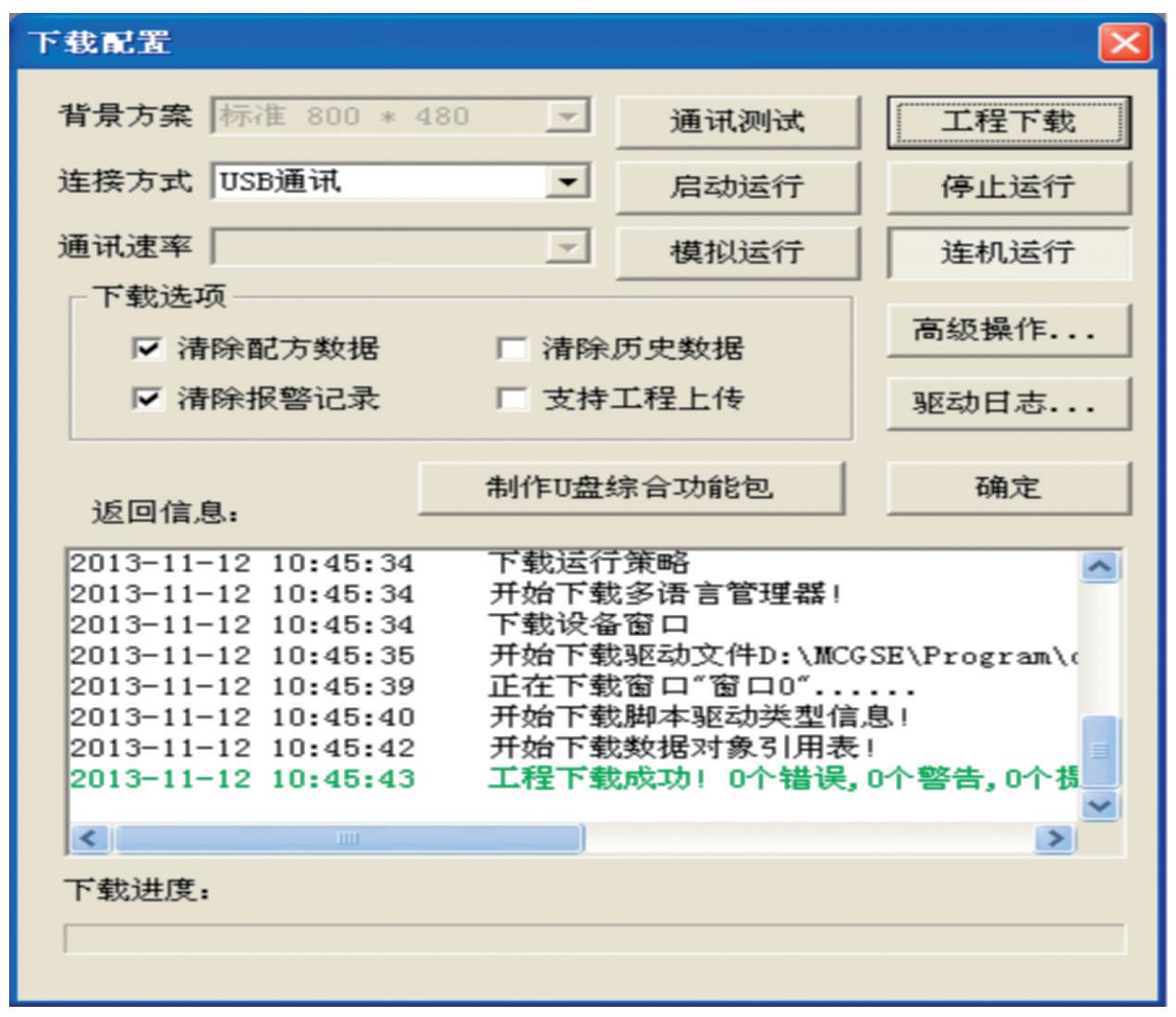 功能:实现组态的下载或者模拟运行