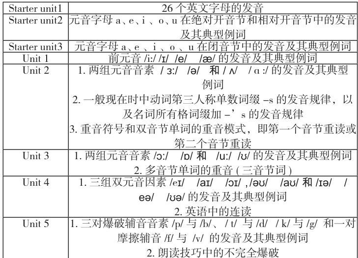 人教版新教材七年级上册语音部分重点介绍了英语音素,目的是让学生读准每个音,并能够认读音标,根据词典提供的音标准确读出单词。语音知识在人教版新教材七年级上册各单元的分布如下:
