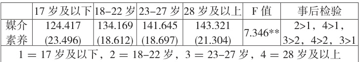 表 2 不同年龄医学生媒介素养的ANOVA 分析结果
