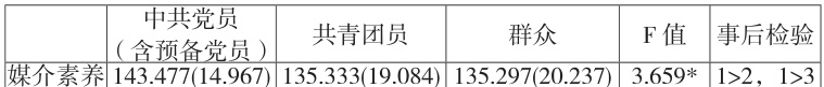 表 3 不同政治面貌医学生媒介素养的 ANOVA 分析结果