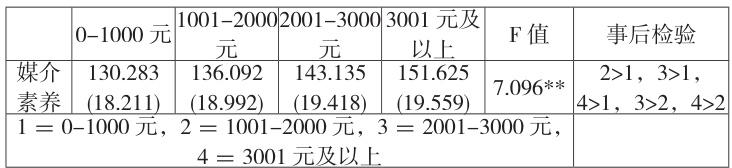 表 4 每月不同生活费医学生媒介素养的ANOVA 分析结果