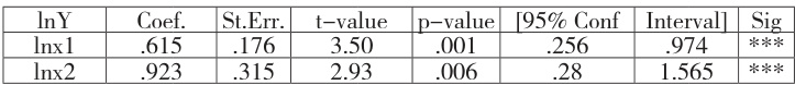 .nY=-3.731+0.615LnX1+0.923LnX2-0.403LnX3+0.282Ln!