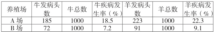 采用 Excel 软件对试验数据进行整理和统计分析,比较两组牛羊的疾病发生率和平均日增重的差异显著性,以 P<0.05 作为差异显著的标准。