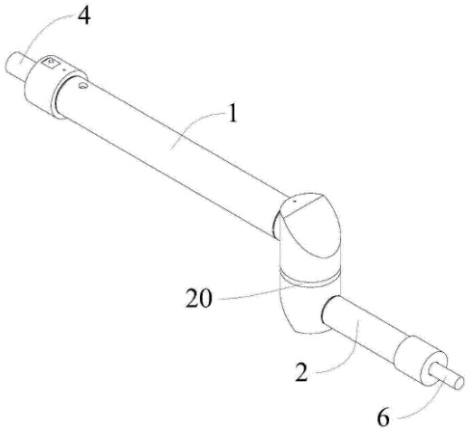 1、第一转臂;2、第二转臂;4、第一球关节;6、第二球关节;20、增磨片