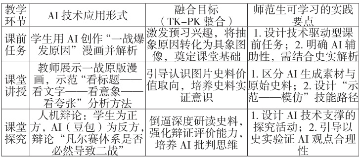 TK 与技术融合能力:强调师范生将 AI 与历史教学深度融合,引导学生用 AI 创作漫画诠释历史、用 AI 进行人机辩论深化认知,培养“以史实甄别AI 输出内容”的批判意识,顺应时代要求。