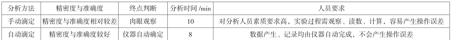 表6 手动滴定与自动滴定比较