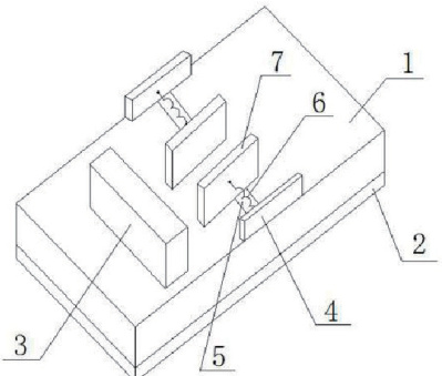 1- 固定板,2- 防滑垫,3- 挡板,4- 连接板,5- 滑动槽,6- 弹簧,7- 支撑板,8- 滑块