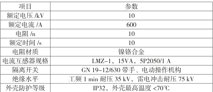 表2 低电阻接地装置技术参数