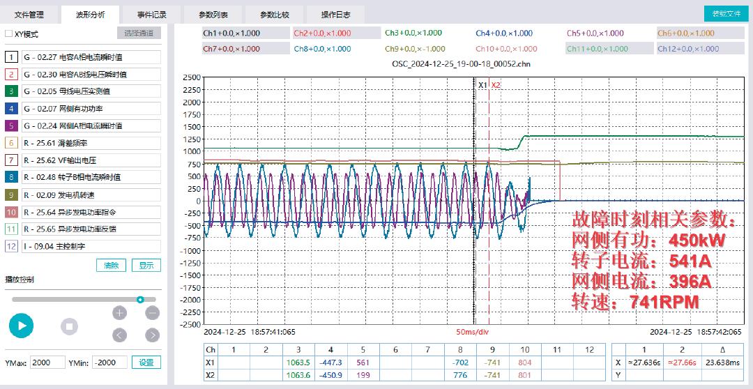 故障现象:在异步鼠笼模式下,共振穿越工况可能会报出下定子或转子过流;