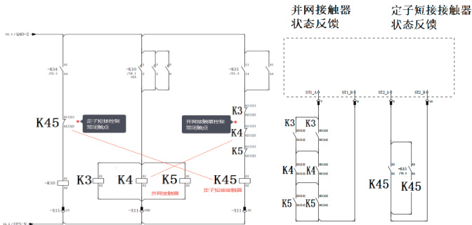 解决方案:冗余设计,新增一组触点作为定子短接接触器驱动回路,确保互锁机制的可靠性,单独用作定子短接接触器驱动回路。